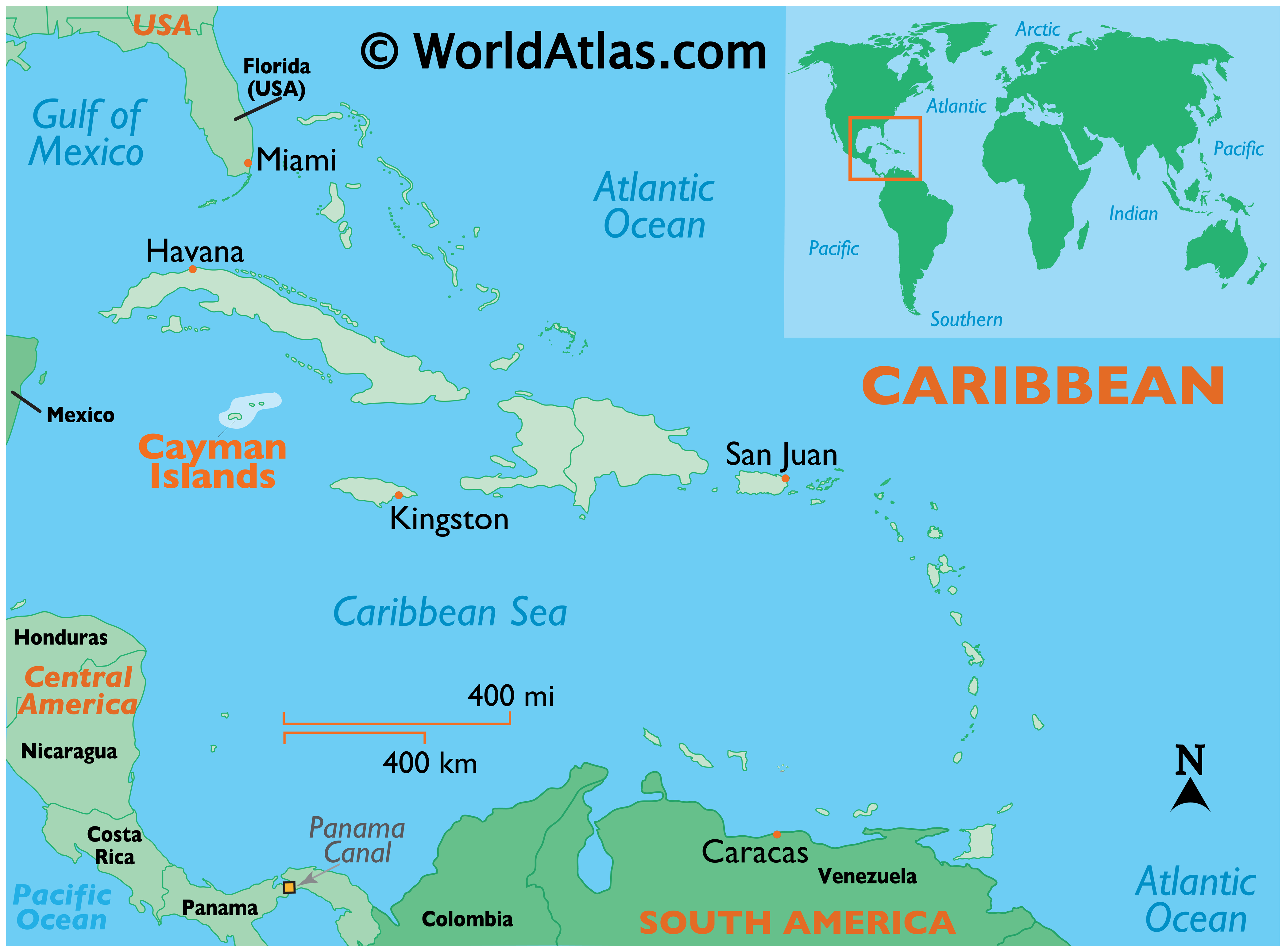 The three-island groups of Grand Cayman, Cayman Brac, and Little Cayman together form the British Overseas Territory of the Cayman Islands, which are located in the northwestern Caribbean Sea. The islands are geographically positioned both in the Northern and Western hemispheres of the Earth. The Cayman Islands are situated to the north of Panama; to the northeast of Costa Rica; to the south of Cuba; to the east of Quintana Roo and Yucatán State; and the northwest of Jamaica. The Cayman Islands are surrounded by the Caribbean Sea.