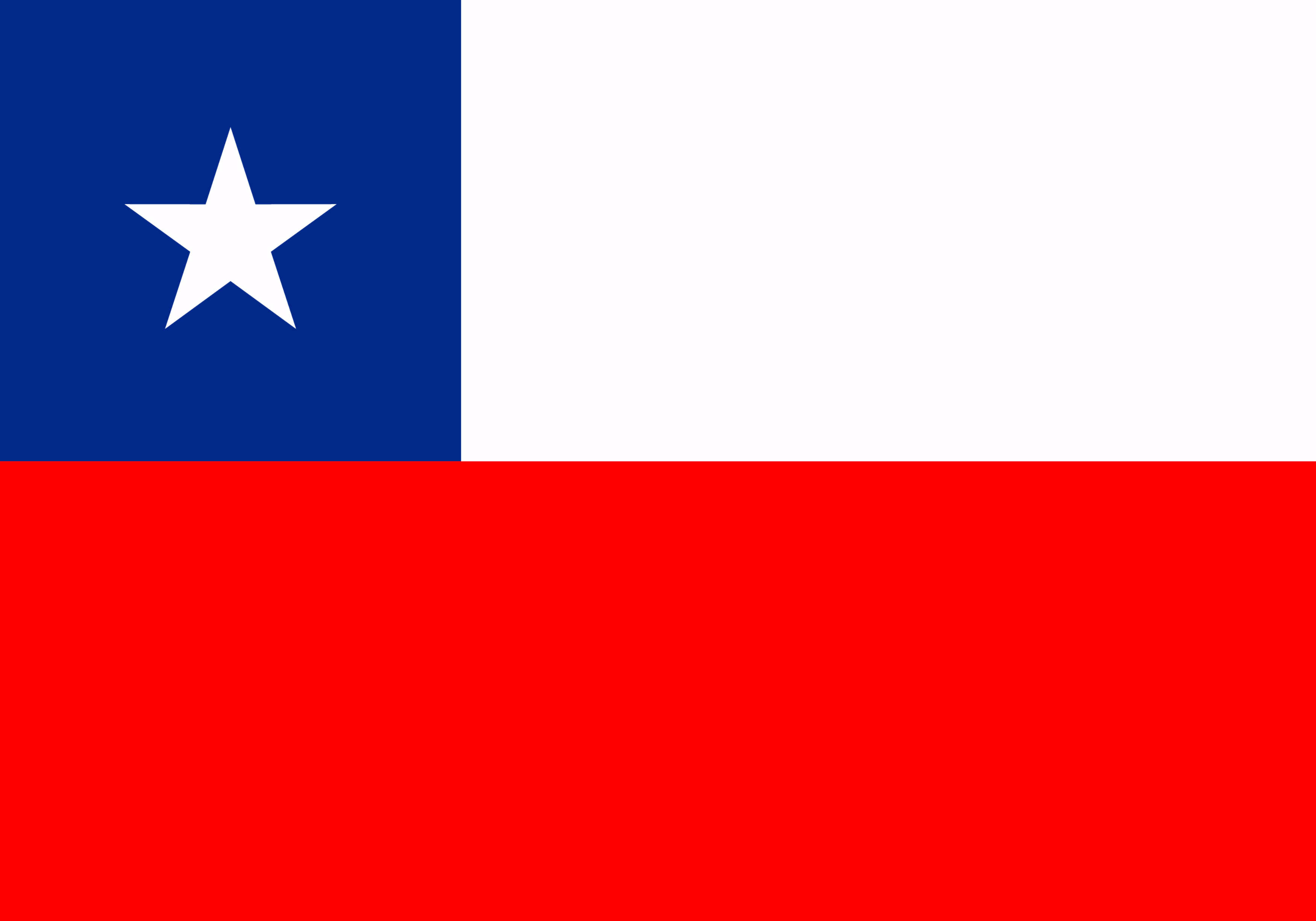 The National Flag of Chile features two equal horizontal bands of white (top) and red; with a blue square band of the same height as the white band positioned at the hoist-side end of the white band. This blue square band bears a white five-pointed star in the center. The blue color of the band represents the high-mountain sky and the Pacific Ocean. The white color represents the snow-covered Andes mountains. The red color symbolizes the bloodshed by the Chileans during the long struggle for independence from Spain. The white five-pointed star represents a guide to progress and honor. The flag has a width-to-length proportion ratio of 2:3.