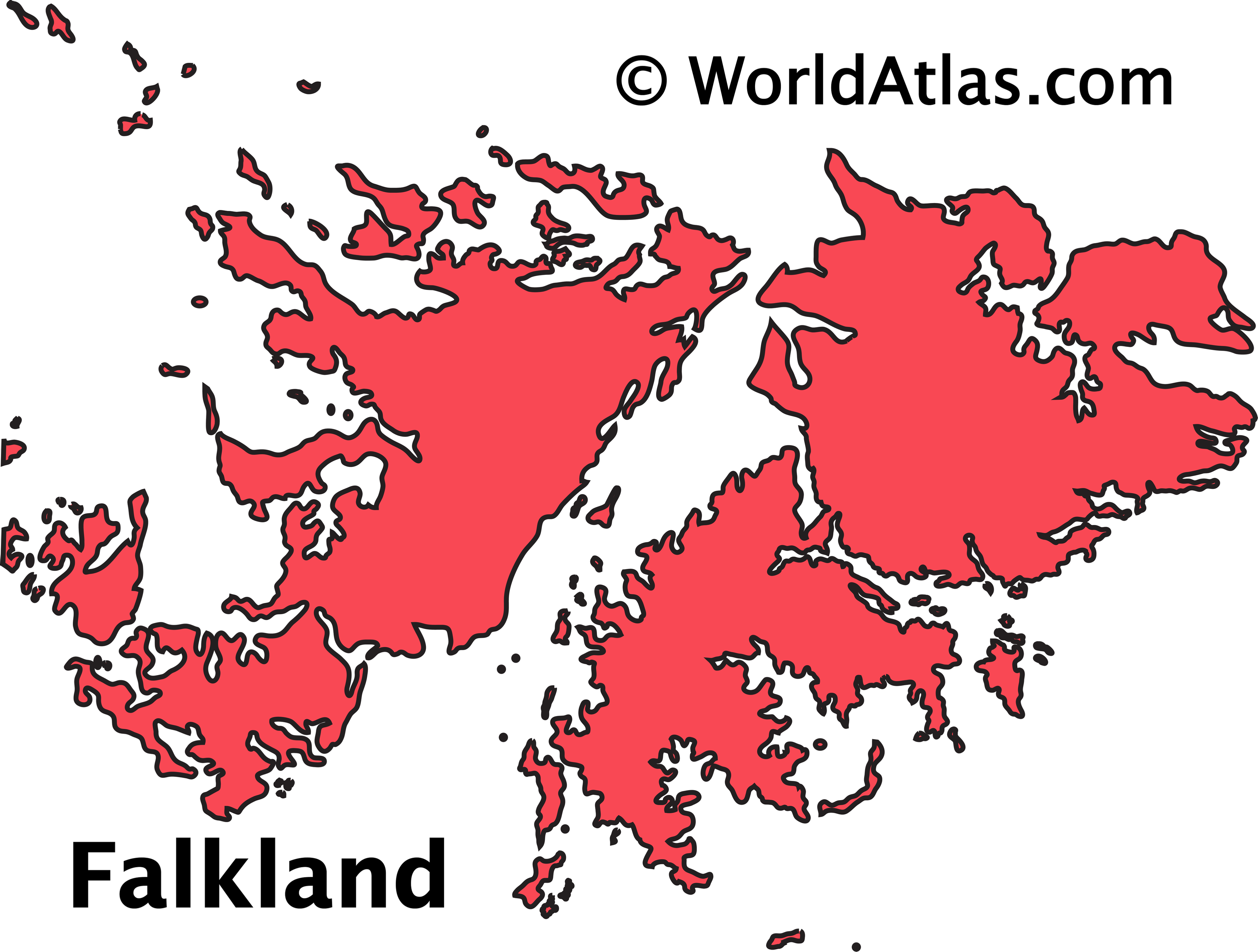 The above outline map represents the Falkland Islands - an archipelago comprising of two main islands and 776 smaller islands in South Atlantic Ocean. It is an overseas territory of the United Kingdom.