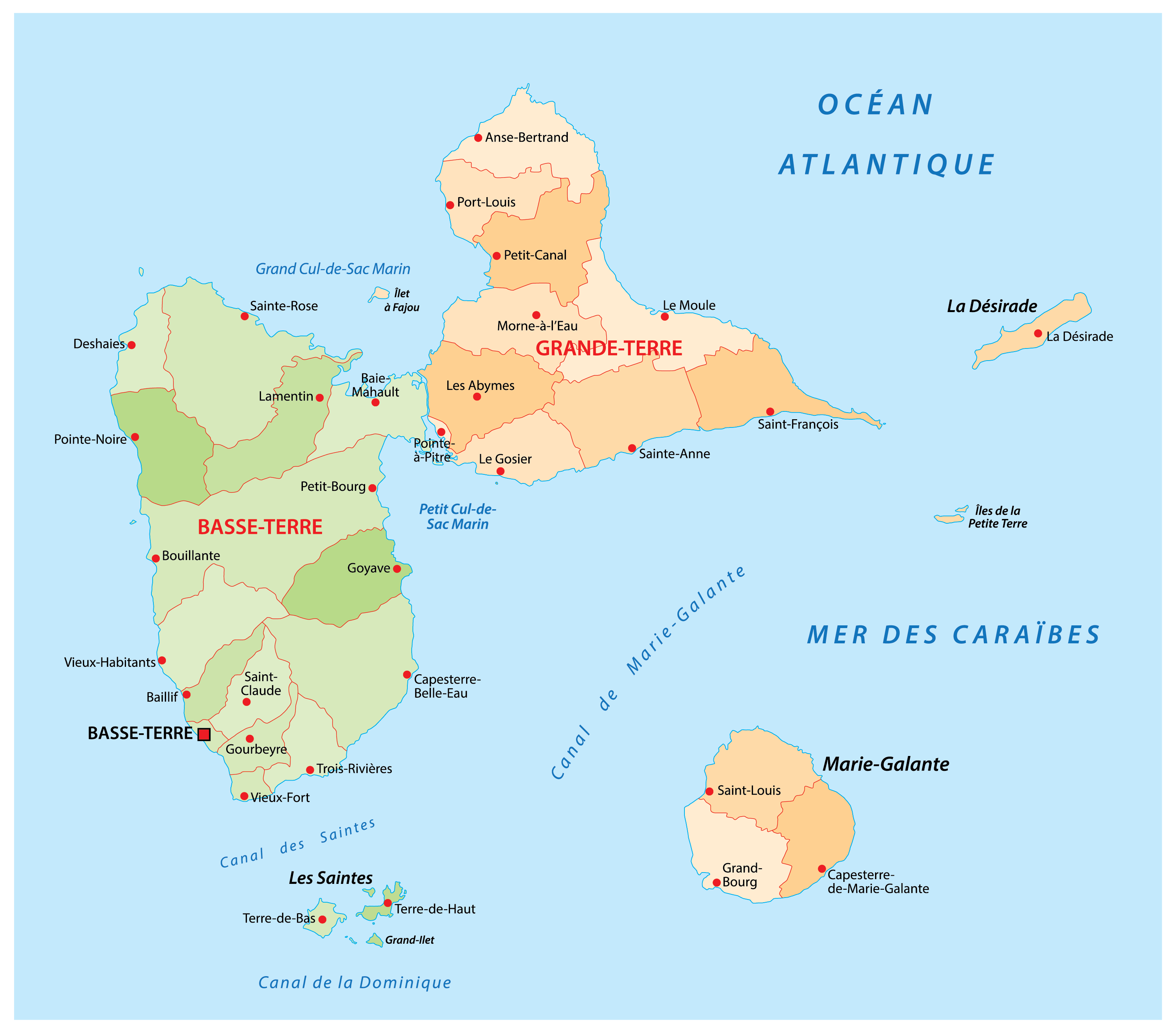Being an overseas region and department of France, Guadeloupe has no such distinct administrative divisions. However, for the sake of local governance, Guadeloupe has been divided into a total of 32 communes.