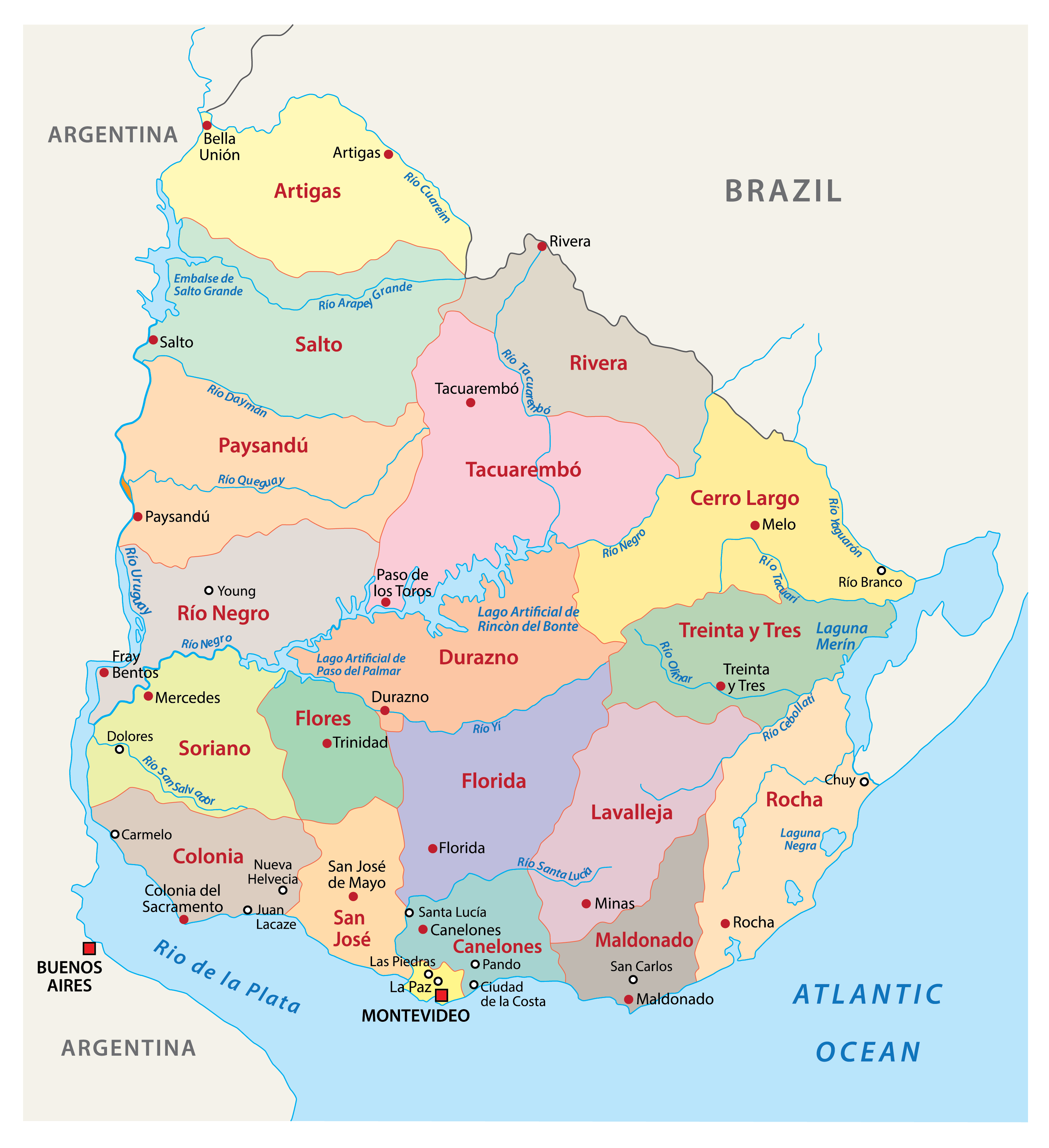 Departments of Uruguay Map